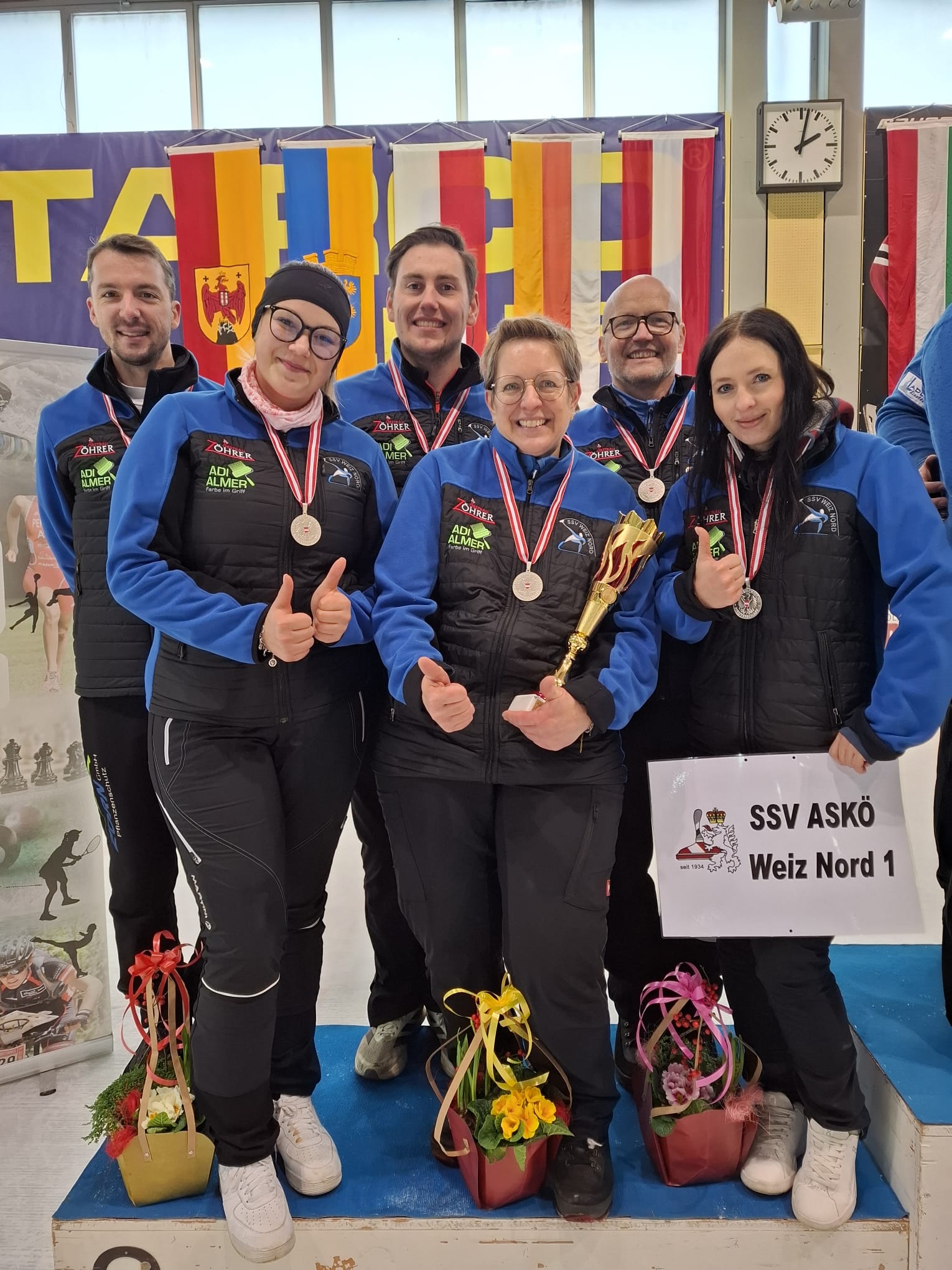 Bei der Österreichischen Meisterschaft in Klagenfurt spielte unsere Mixed-Mannschaft ganz groß auf und konnte erst im Finale gestoppt werden. Anja Mandl, Alexandra Szumer, Bettina Karner, Mario Weingartmann, Rene Peinhaupt und Gerhard Hatzl durften sich somit über Silber freuen. ![]()